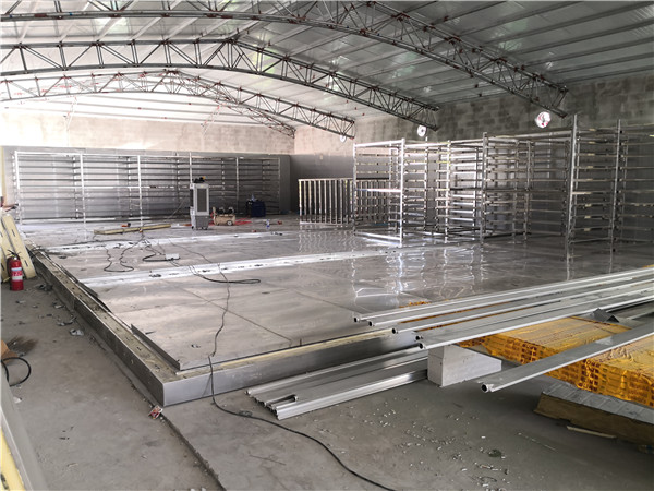 速凍鋁排貨架冷庫不銹鋼庫板安裝現(xiàn)場